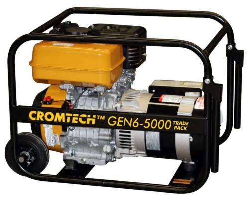 The all-purpose Cromtech generator petrol 5000w (max.) output is a simple, no-fuss unit which also includes tradepack. Tradepack includes IP66 weatherproof outlets with RCD protection, two wheels, lifting bar/hook, and also fold-out transport handles. This unit is site safe* and ready to use and is ideal for construction, agricultural, worksites and farming industries. It features a reliable petrol Robin engine, Mecc Alte brushless alternator all built in a 25mm Australian fabricated heavy-duty steel frame. Assembled and tested in our Australian factory. The simple generator comes with a three-year Robin engine warranty and also has a two-year manufacturer’s warranty. Customization options include; powered by Honda engine and also electric start.